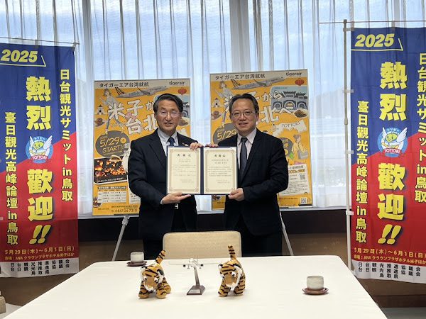 【WoWoNews】因誕生了《鬼太郎》作者水木茂與《名偵探柯南》作者青山剛昌兩位享譽全球的漫畫家,鳥取縣素有「漫畫王國」之稱。台灣虎航商務長許致遠和日本鳥取縣知事平井伸治今(12)日共同宣布,將於2025年5月29日開航桃園-米子航線,也是飛航日本的第22條航線;且適逢今年的第16屆台日觀光高峰論壇將於5月在鳥取縣舉辦,讓此航線的開航更具象徵意義,展現台灣虎航持續為深化台日交流而努力。