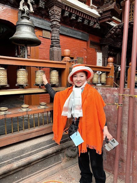 (白冰冰在尼泊爾轉經輪 照片/長興影視提供)
