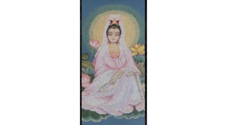 一名住在岡山區的呂姓女士,利用半年多的時間,刺繡出一副「觀世音菩薩」聖像,手工細膩,栩栩如生。能完成刺繡聖像,周遭朋友咸感驚訝!