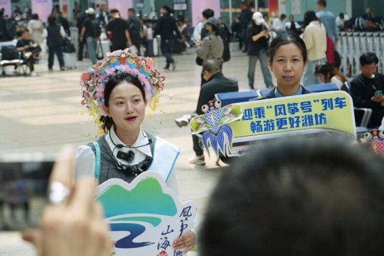 波新聞─陶泰山編輯 近日,G1069次列車從北京南站駛向山東濰坊,這是首趟從北京始發的“濰坊風箏號”旅遊專線列車。 濰坊自古以來就有春季放風箏的風俗,1984年開始當地每年舉辦國際風箏會,吸引著世界各地的風箏團隊,濰坊市由此成為了世界風箏之都。在第42屆濰坊國際風箏期間,開行北京至青島“濰坊風箏號”旅遊專線列車,3小時52分鐘可到達濰坊站,為遊客提供便捷舒適的出行選擇。 圖/風箏班列,京報網