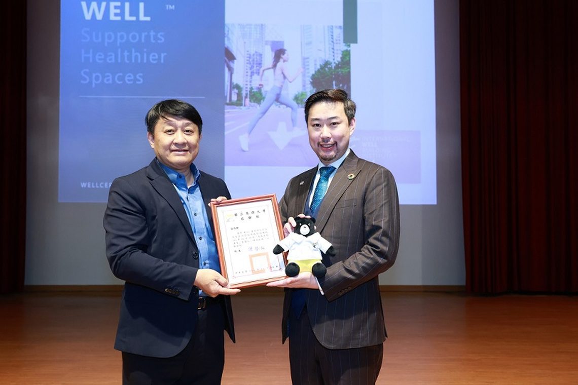 圖/高雄大學校長陳啓仁(左)致頒感謝狀予國際WELL建築研究院(IWBI™)亞洲區副總裁張為舜