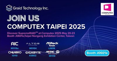 台北 2025年5月18日 /美通社/ — 全球 GPU 加速資料保護領導品牌 Graid Technology Inc. 圖睿科技將參加 COMPUTEX Taipei 2025,展會將於 2025 年 5 月 20 日至 23 日在台北南港展覽館隆重舉行。因應 AI 與大數據時代的高速發展,圖睿科技將展示其創新技術,重新定義效能與資料安全的標準。展會期間,將以產品 SupremeRAID™ —— 全球唯一專為 NVMe 及 NVMeoF 設計的 GPU 磁碟陣列加速器作為核心展示。此產品單卡可提供高達 260GB/s與 2800 萬 IOPS 的卓越效能,並內建最新專利技術雙重分散式寫入洞日誌保護,確保資料在系統當機後仍能迅速恢復,有效提升資料保護等級。 圖睿科技致力於打造邊緣到雲端的全方位應用的資料保護解決方案,帶來極致效能與高可靠的資料安全完美結合,成為引領未來儲存技術的關鍵力量。