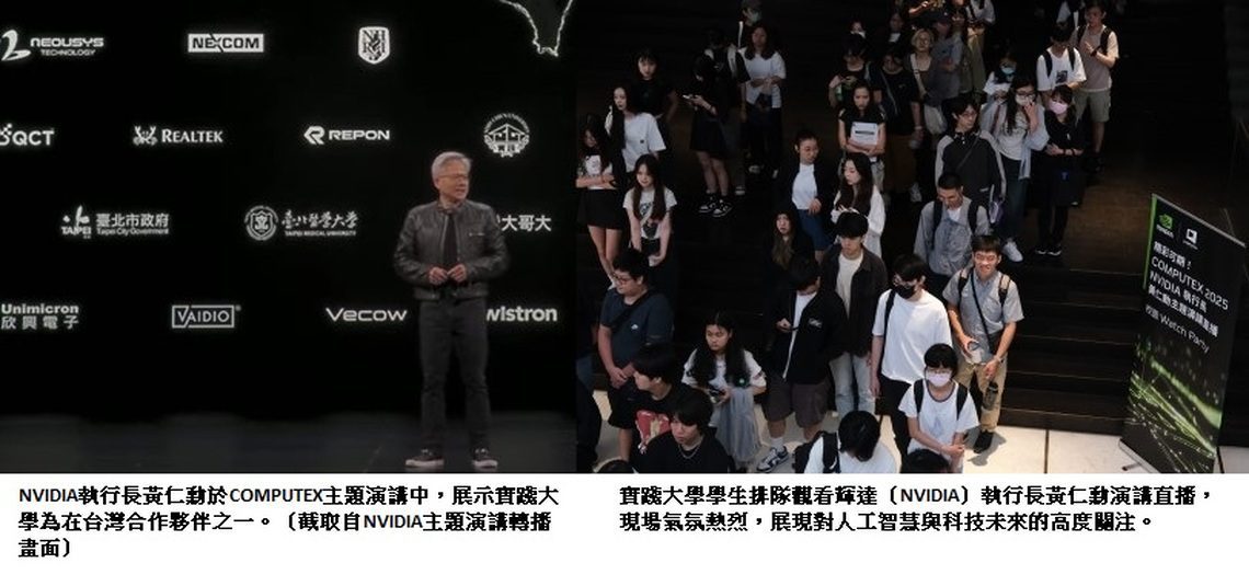為加速人工智慧(AI)教育推展並強化教學與實務的連結,實踐大學於5月19日舉辦「NVIDIA創辦人暨執行長黃仁勳 COMPUTEX 2025 主題演講」校園現場直播活動(Watch Party),吸引全校跨院逾三百位師生參與,共同關注全球AI發展趨勢。