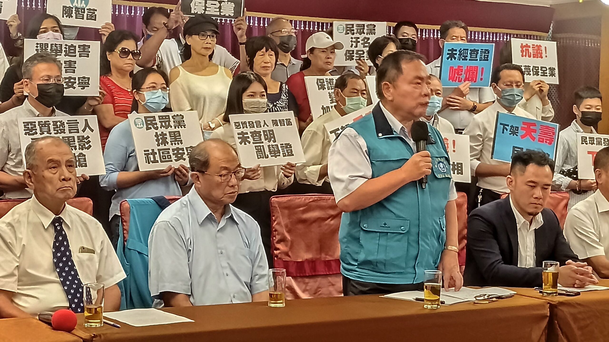 台灣民眾黨總統參選人柯文哲辦公室發言人陳智菡日前指控,保全業全國聯合會理事長 張達錩先生涉及十三年前台中市「廣三大時代」案,涉嫌恐嚇、毆打管委 會幹部。這樣完全扭曲事實,胡亂的指控,嚴重汙衊保全產業安全價值,為政治 惡鬥染黑競爭對手而汙衊張理事長,保全業全國聯合會、及各地公會理事長在此 嚴正提出抗議,要求民眾黨必須向全國30萬保全從業人員公開道歉,還一個公道。也將委任律師,提出相關法律訴訟。