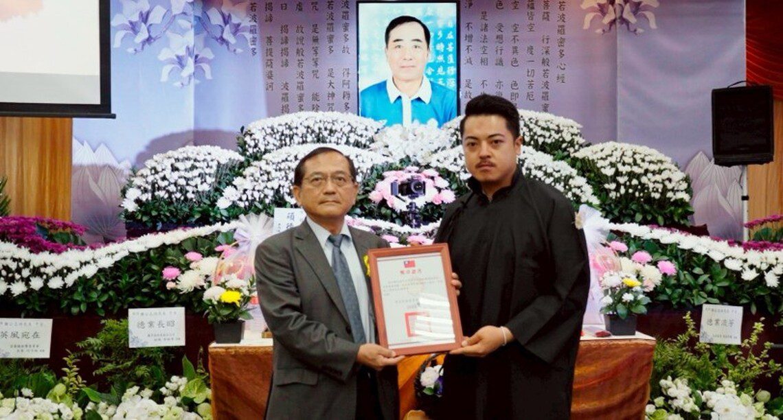 圖/鍾興華Calivat.Gadu副主委代表原民會表彰已故前國家射擊代表隊謝志培先生並追頒二等原住民族獎章