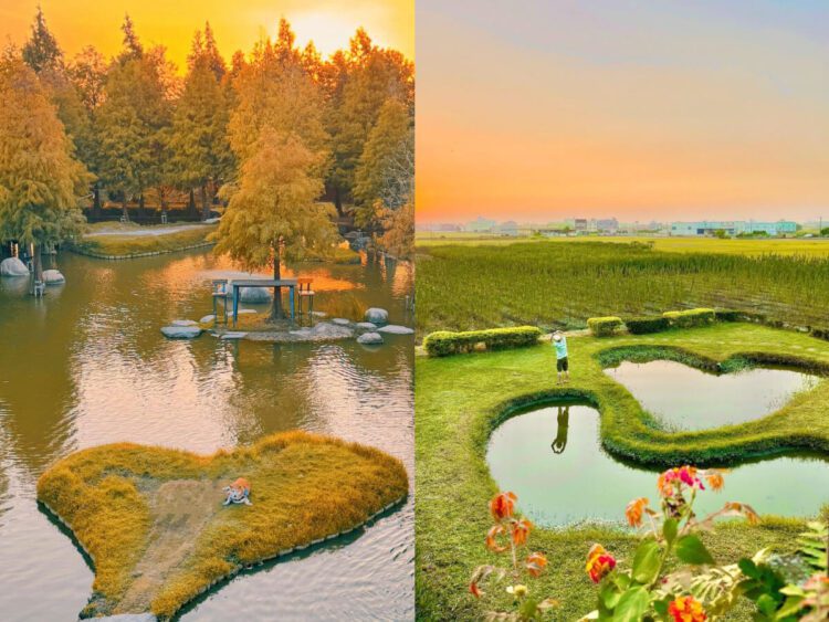 彰化的雙心池塘被譽為綠地版的澎湖雙心石滬,是一座人造雙心池,也是觀賞美麗夕陽的好地方。這裡景色優美,尤其在夕陽下更顯浪漫迷人。附近居民不時也會來這觀賞夕陽、蓮花,享受簡樸自在的生活。最棒的是,在夕陽下與另一伴拍雙心池,有夠浪漫~