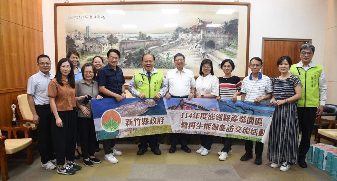 新竹縣政府辦理「114年度澎湖縣產業園區暨再生能源參訪交流活動」,今(3)日下午由縣長楊文科率隊拜會澎湖縣長陳光復,雙方就綠能發電與產業發展進行深入交流。