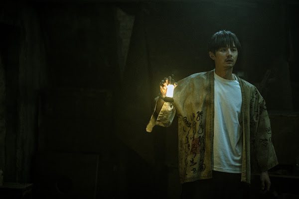 (照片:天予電影提供/張軒睿反轉以往陽光形象,蓄鬍且少年白頭,一身充滿宗教風格的服裝,化身通靈驅魔人阿生)
