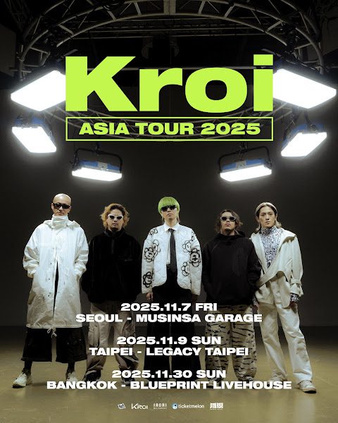 Kroi 即將在11 月起展開首次亞洲巡迴「Kroi Live Tour 2025 – ASIA」,本次也將台灣納入巡迴站點,預計共走訪首爾、台北、曼谷三座城市,台北場將在11 月9 日於Legacy Taipei 盛大登場。和台灣有著深刻連結的Kroi,在 2023 年首度來台參加CityFlow音樂節即獲得廣大回響,這次也是繼 2023 年來台拍攝〈Hyper〉MV、2024 年舉辦首場海外專場,又在今年初登上台中代表性音樂祭浮現祭主舞台後,再度回歸台灣舞台,把最強烈的現場能量一次帶給台灣樂迷,這一次,勢必再度掀起一場搖滾狂熱。