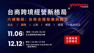台北2025年10月21日 /美通社/ — 隨著全球供應鏈重組加速,企業「中國+N」的佈局已成新常態。為協助台商企業掌握新一波「出海」契機,並化解隨之而來的稅務合規、制度差異與在地營運挑戰,台灣用友資訊軟體有限公司(簡稱台灣用友)正式啟動「六城聯航|台商合規發展與轉型論壇」系列活動。