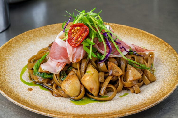 義式手作寬麵搭配鮮嫩火腿與當季蔬菜,呈現《豬露食事》簡樸卻用心的家常味(圖/Medick Marketing Ltd.提供)
