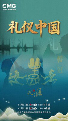 《禮儀中國》將於11月21日22:30在央視綜合頻道(CCTV-1)首播;11月22日19:45登陸中文國際頻道(CCTV-4),帶領觀眾踏上跨越五千年的文明尋根之旅。