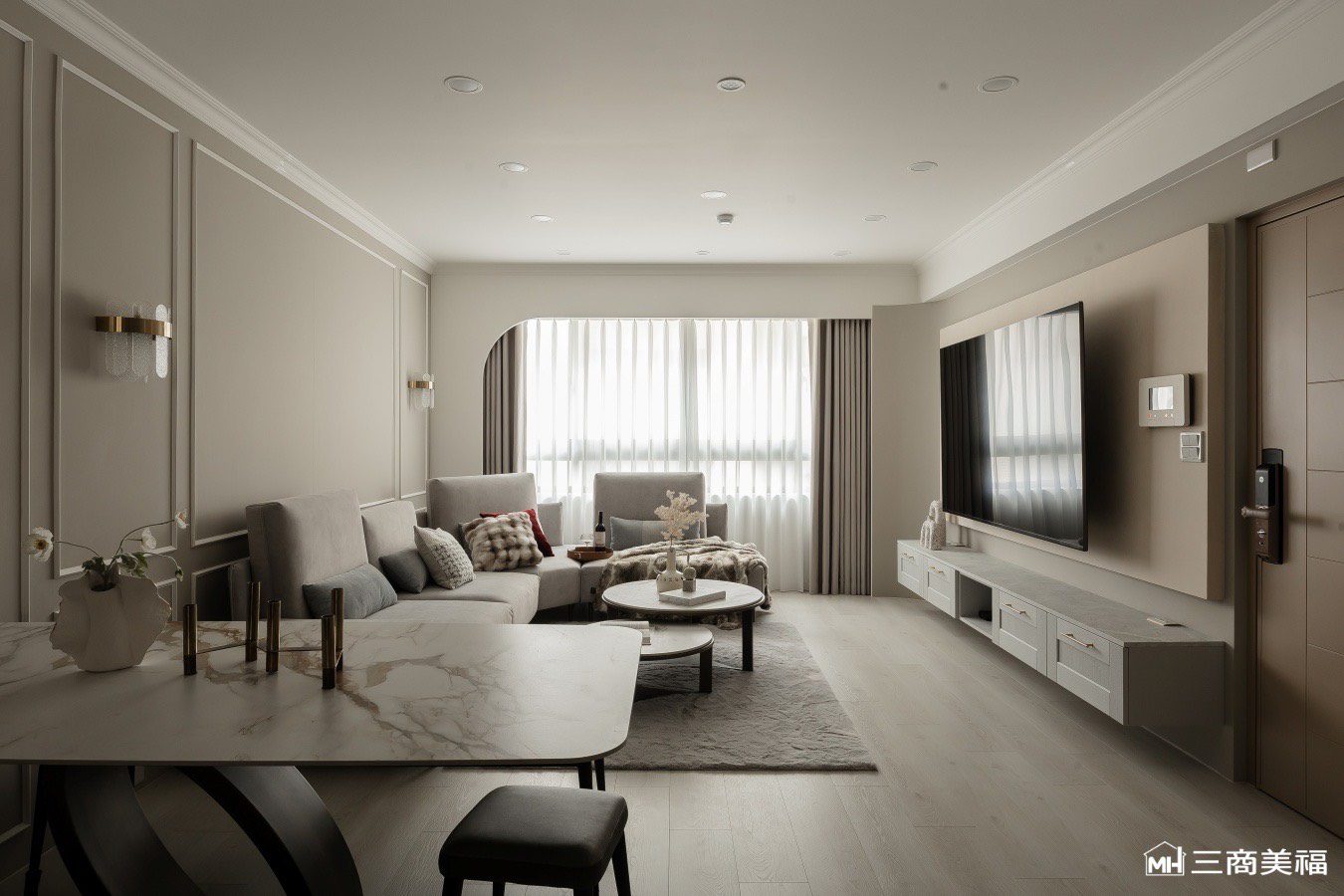 此專案的設計核心在於平衡一家五口細膩多元的生活習慣與需求。設計師以現代美式風格為主軸,巧妙揉合圓弧語彙與溫暖的奶茶色調,讓家成為安放多重期待的溫暖居所。