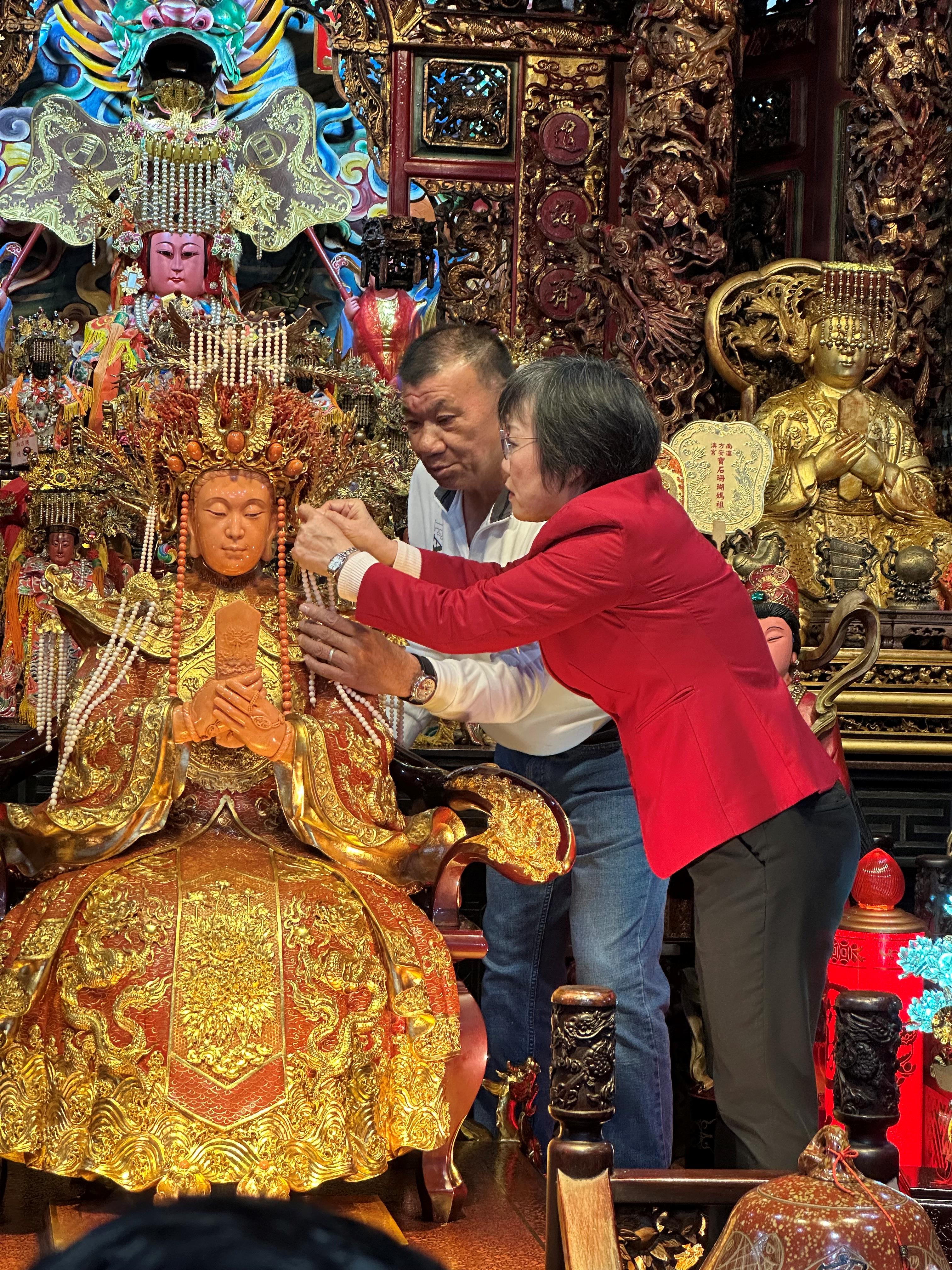 內政部長劉世芳今(6)日出席南方澳進安宮舉辦的「寶石珊瑚媽祖鳳冠復華」儀典,並與宜蘭縣代理縣長林茂盛共同為媽祖戴上串珠配飾。上(11)月5日媽祖身上的黃金項鍊及珊瑚配飾遭竊,在警方積極追查下全數追回,本次儀典不僅象徵遺失物品回復原位,也代表地方信仰的完整與延續。劉世芳在致詞中感謝各界人士的付出,並期許南方澳進安宮未來持續為宜蘭縣帶來正向影響力。