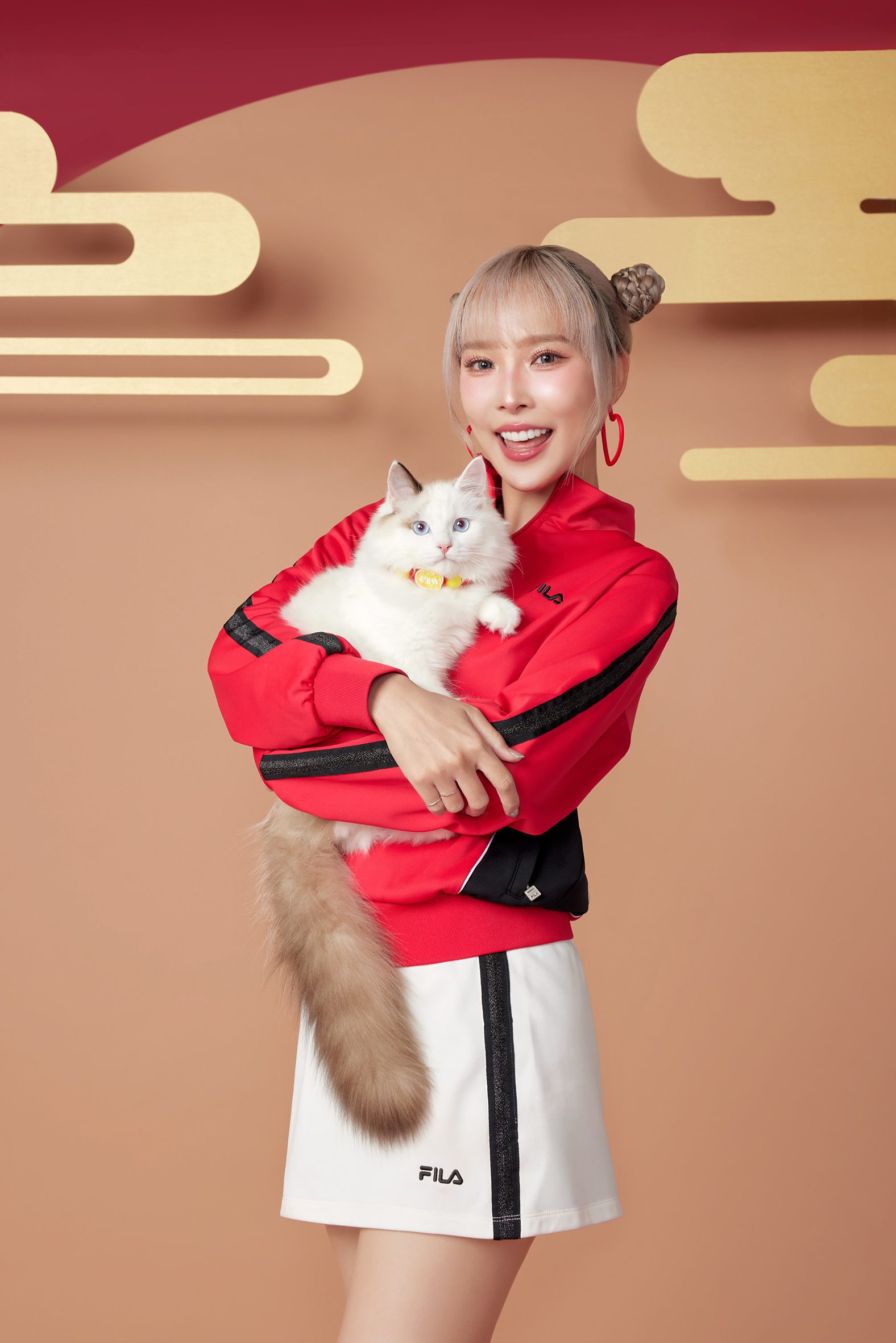 同時FILA形象大使 RINA也以一身俐落紅色外套帶著愛貓拜年,過年想要喜氣又不失帥氣感,只要挑一件亮眼紅色外套就能立刻上身。相信不少寵物迷也會帶著心愛的毛孩一起過年,把「好看」和「好運」一起穿出門,用最有型的方式迎接新年。