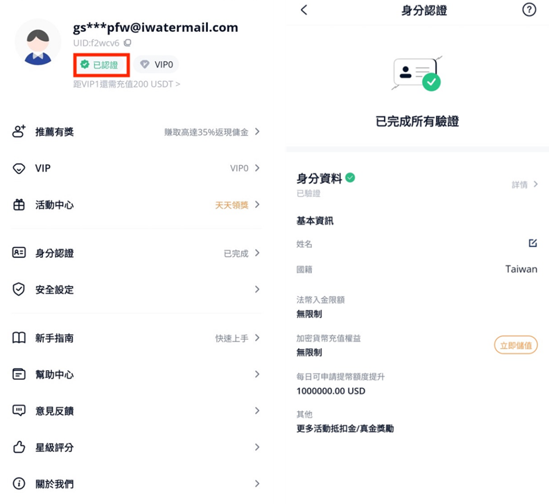 平台通常幾分鐘到幾小時內就會審核通過。驗證完成後,您可以查看該驗證等級所享有的各項權益。