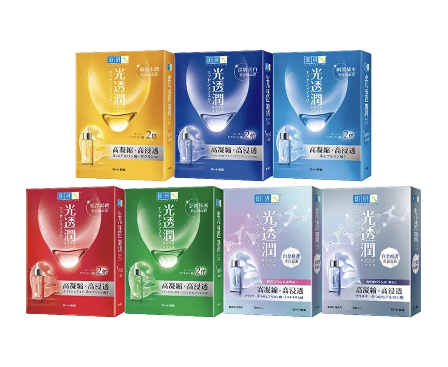 肌研光透潤系列以多種玻尿酸組合為特色,面膜布極薄、服貼度高。血色感面膜加入維他命 B12,呈現淡粉色外觀,深受喜歡清爽保濕感的消費者喜愛。