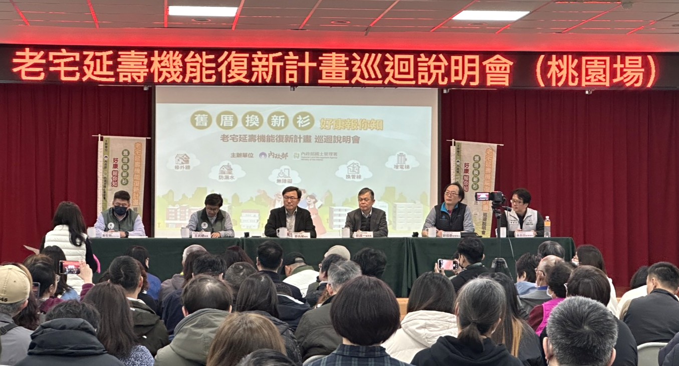 「舊厝換新衫,政府作伙擔!」內政部「老宅延壽機能復新計畫」列車首度開進國門之都,今(2)日於桃園區公所登場。內政部國土管理署長蔡長展表示,去(114)年底在雙北舉辦說明會時,發現許多桃園鄉親不辭辛勞跨區參加,展現對居住安全的高度重視。為了回應這份期待,讓鄉親免於奔波,內政部看見在地需求,今(115)年2月直接深入人口最稠密、老屋較多的桃園區舉辦說明會,鼓勵社區及房屋所有權人於116年12月31日前踴躍提出申請,讓老家變新家。