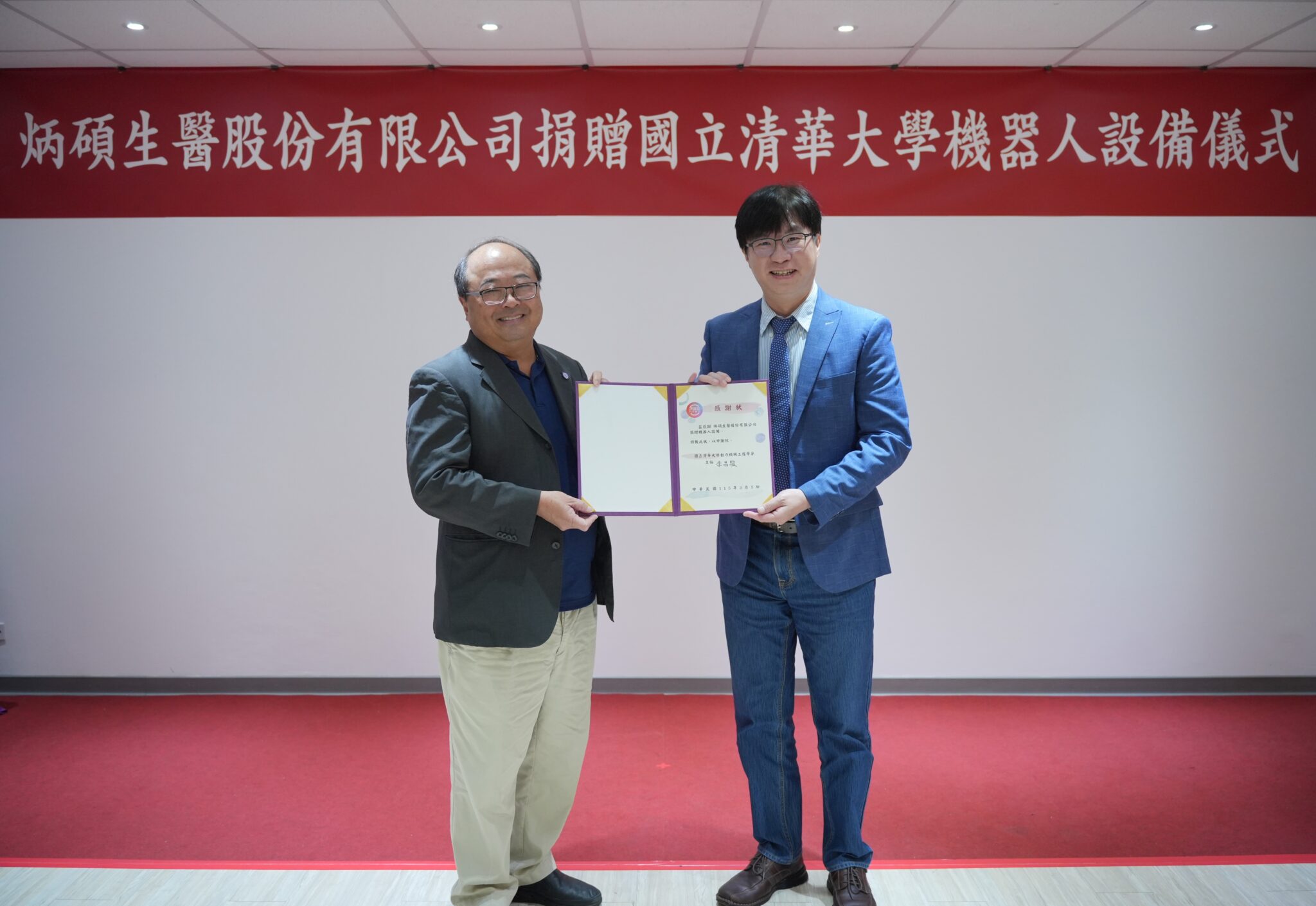 在全球微創手術與機器人輔助技術快速成長之際,台灣醫療機器人產業正逐步強化自主技術與系統整合能力。由國立清華大學動力機械工程學系校友創立的炳碩生醫股份有限公司,於3月5日假清華大學動機系舉行設備捐贈儀式,捐贈兩套史都華平台機器人系統(Stewart Platform)及相關數據採集與驅動模組設備,總價值近150萬元新台幣,作為研究與高階工程人才培育之用,展現系友回饋母校、深化產學合作的長期承諾。