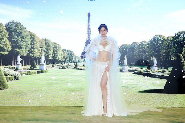 (「花都女神」鄭芯恩一襲白色薄紗搭配「撩波 巴黎之春」亮麗登場 (思薇爾提供))
