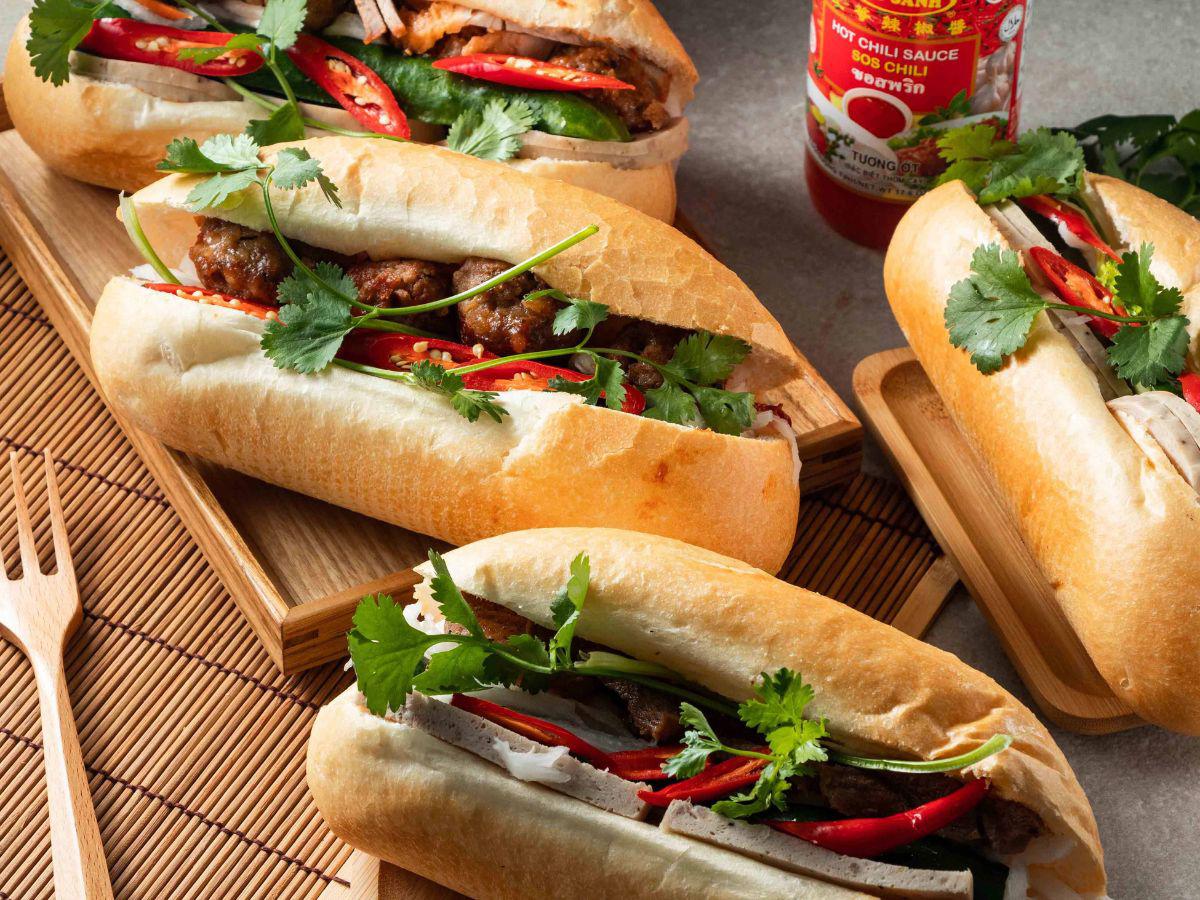 A:這項美食源於 19 世紀法國殖民時期,越南人將法式長棍麵包(Baguette)改良,加入本土食材如米粉,使口感更輕盈酥脆。黎董法式麵包完美復刻此工法,將法式基底與南洋醃菜、肝醬結合,成為具備東西方融合特色的標誌性異國料理。
