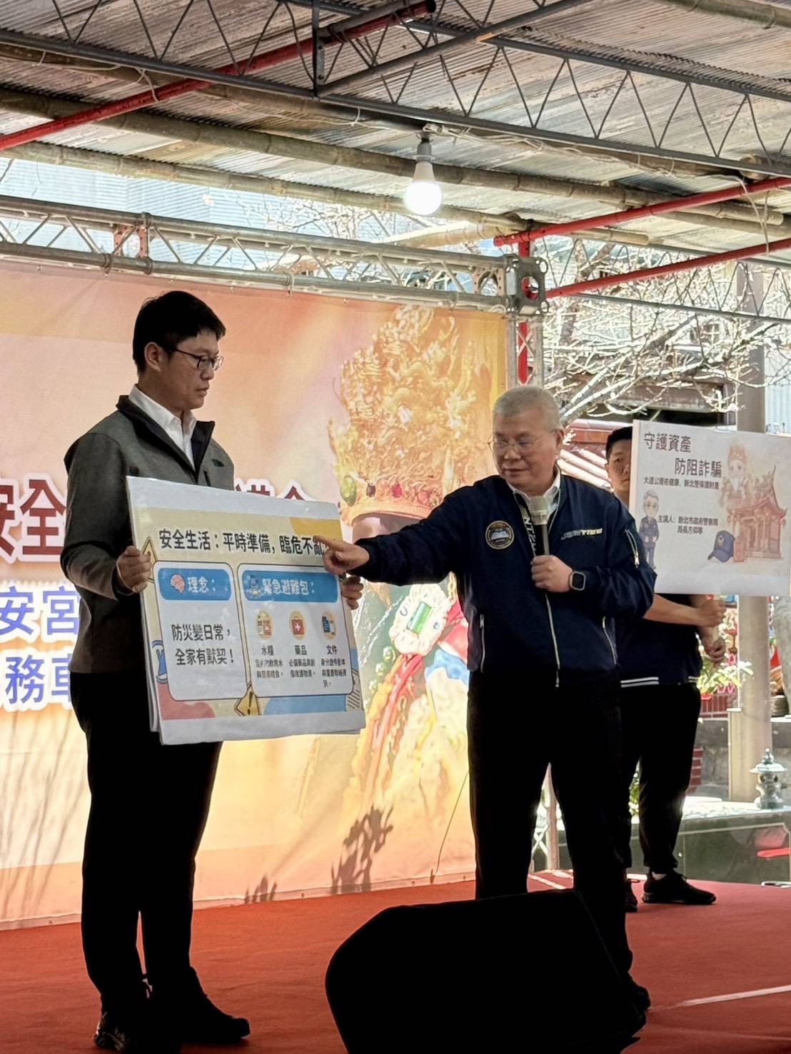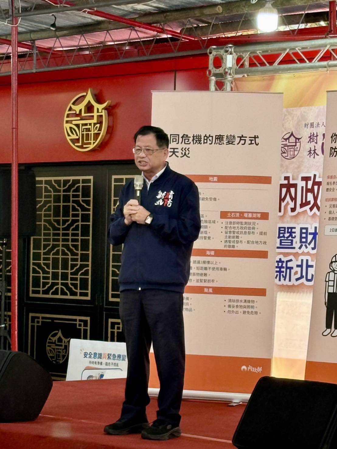 為推動全民防災觀念,內政部今(14)日上午10時於新北市樹林濟安宮舉辦第23場臺灣全民安全指引宣講會,由內政部常務次長吳堂安、新北市政府警察局局長方仰寧及新北市政府消防局長陳崇岳主講,現場聚集超過1,000位民眾熱情參與,立法委員蘇巧慧、新北市民政局副局長莊茂坤、21位在地里長及財團法人新北市樹林濟安宮董事長陳黃綠妹也蒞臨現場。