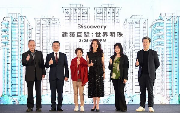 (【Discovery《建築巨擘:世界明珠》】六位嘉賓一同進行首映啟動儀式,(由左至右)南榮開發建築執行長洪國雄、南港輪胎董事長郭林諒、南港輪胎榮譽董事長林夫人、華納兄弟探索集團大中華區廣告業務及內容發行長馬艶華、華納兄弟探索集團亞太區內容總監李美儀、導演楊守義。)