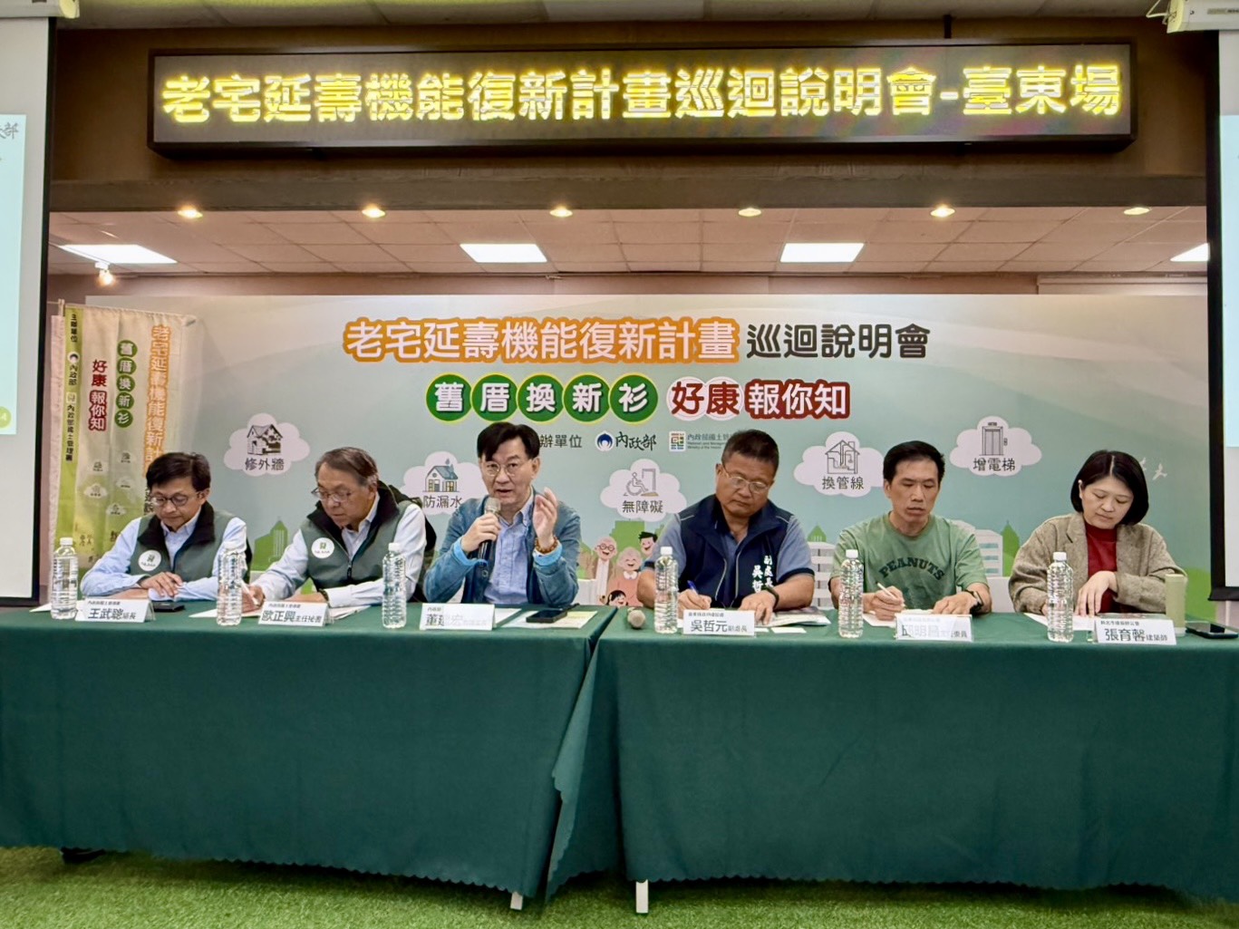 面對臺東縣人口與住宅高齡化的現況,內政部今(21)日於臺東市公所舉辦全縣首場「老宅延壽機能復新計畫」說明會,現場湧入來自臺東市及鄰近鄉鎮關心家園修繕的鄉親。內政部政務次長董建宏表示,行政院(16)日已正式核定「老宅延壽機能復新計畫」及「因應國際情勢強化老舊建築物修繕補助辦法」,政府會投入50億元特別預算,在116年12月底前提供全國屋齡30年以上建築修繕補助,包括協助臺東鄉親幫舊厝換新衫。