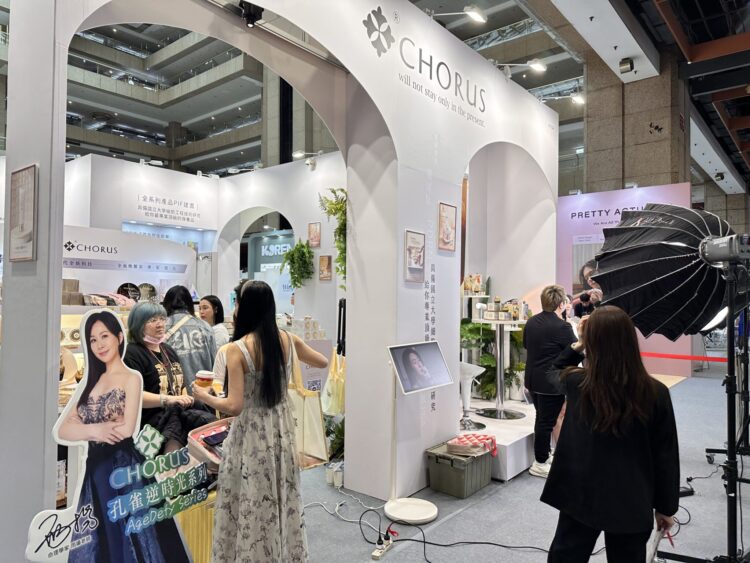 走進展場,各品牌透過不同形式展現對未來保養趨勢的觀察。CHORUS展區以「節奏、平衡與感受」為核心概念,結合光影變化、空間動線與氣味層次,營造沉浸式體驗氛圍。現場人潮絡繹不絕,不少參觀者放慢腳步參與互動體驗,在展會節奏中感受片刻沉靜,成為展場中具辨識度的展位之一。