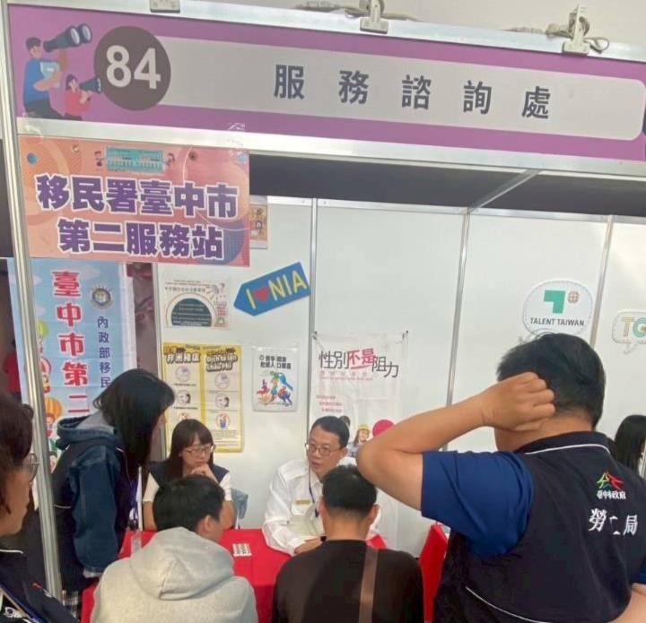 農曆年後,臺中市第二服務站的校園法令宣導活動即陸續展開,除前後前往國立勤益科技大學及中臺科技大學進行面對面交流,並於僑務委員會舉辦的「2026僑生就業博覽會」設攤,現場說明留臺就業相關規定,協助輔導他們安心留臺工作。