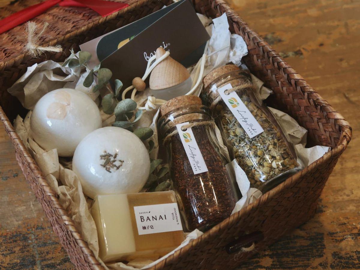 花蓮質感環保禮盒:結合手工編織盒與無包裝理念,內含柚子皂與泡澡球,打造無價的客製化贈禮(圖/Medick Marketing Ltd.提供)