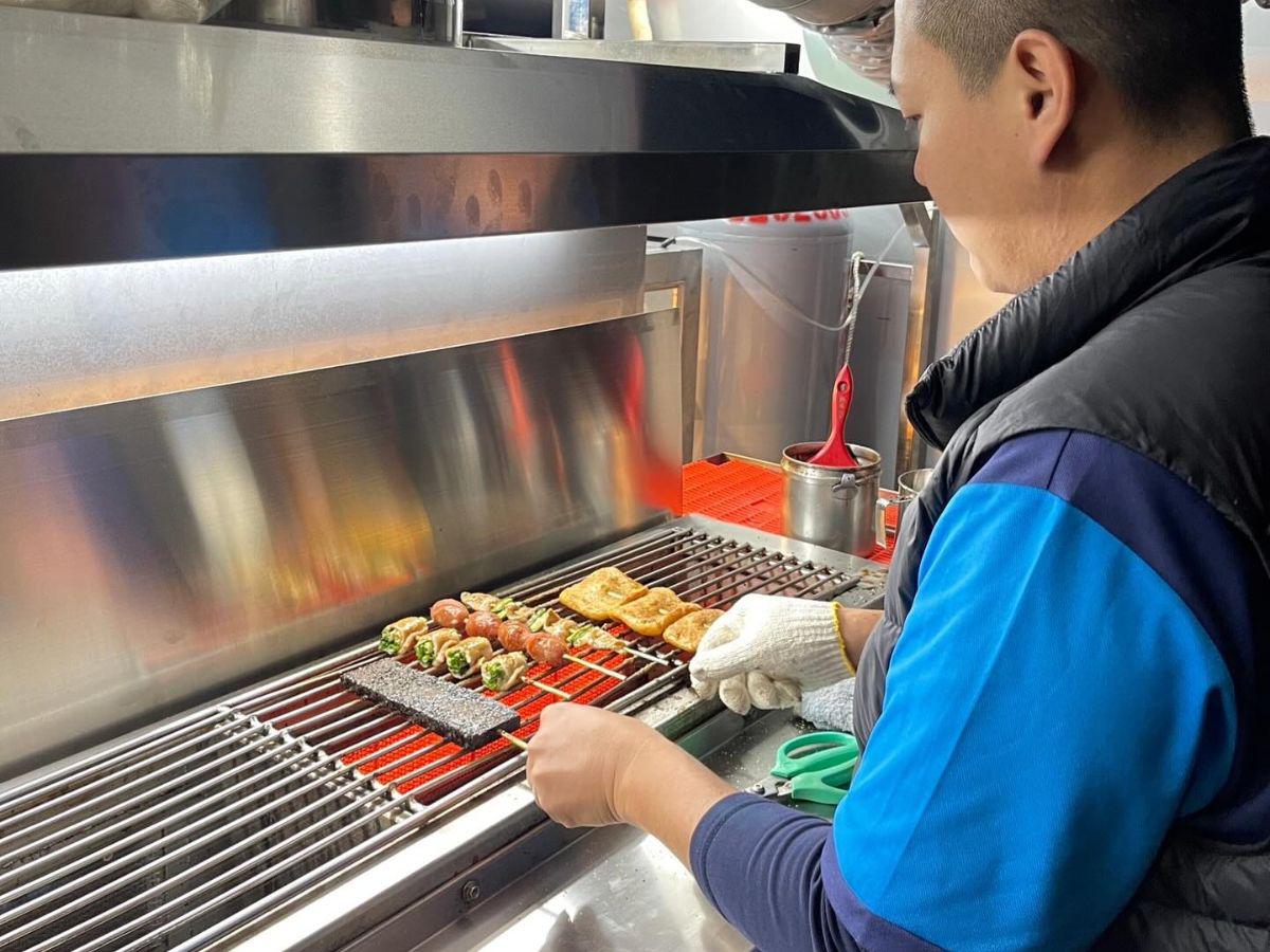 A:菜單涵蓋各式肉類串燒、手工黑輪、米血及季節性鮮蔬,並提供極具特色的鮮蛤與特製風味品項。食材由團隊每日採購,從前置清洗到現場刷醬翻烤皆有標準流程,確保每一串成品都能呈現家傳二十年的正宗鹹甜滋味。