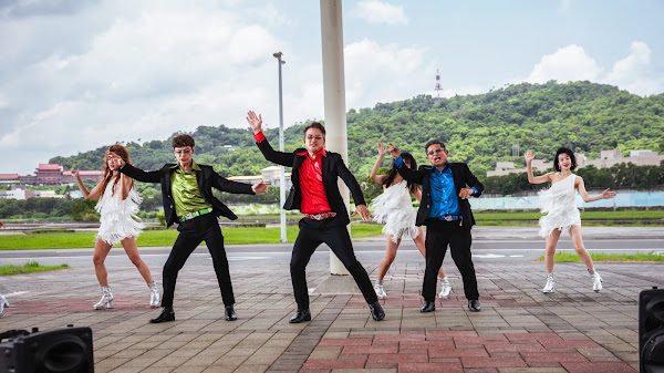 (《NO GOOD!歐吉桑》主題曲〈啪哩啪哩我愛你〉MV,由導演張清峰多年好友、天王天后金曲製作人Jerry黃韋皓操刀製作,以70年代的DISCO迪斯可音樂曲風,混合當年紅遍全亞洲的小虎隊、草蜢、郭富城的元素,帶領觀眾跟著電影中三位大叔,一起回到他們的年輕時代。(圖/萬騰文化創意提供))