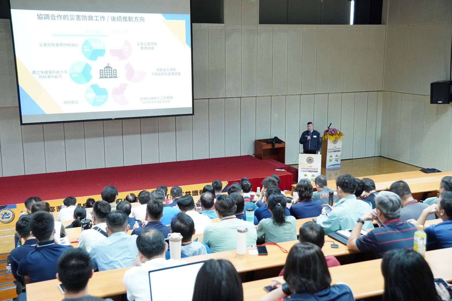 馬士元表示,參考美國CERT體系,消防署自2024年起積極推動「建置臺灣民間自主緊急應變隊中程計畫」,發展專屬我國的 T-CERT 培訓機制,期盼達到「自己的社區先自救」的目標,截至2025年底,從社區到機構共計培育1,775位種子教官,並成功輔導成立195支T-CERT 隊伍,累計培訓達3,586名具備專業應變能力的民間核心隊員,大幅縮短災害發生初期的平均應變與通報時間;2026年更將進行101支新成立隊伍進行基礎培訓,擴大民間防災量能。