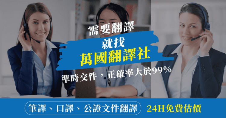 此外,萬國翻譯公司在國內翻譯界頗具知名度與口碑,公司營業至今已承接國內外近50000家企業團體的翻譯委託實績,足見其受到的信賴與肯定,更是一家全方位服務的公司,舉凡專業筆譯、專業口譯、文件公證、聽打逐字稿件和字幕或遊戲軟體的翻譯,已經屬於萬國翻譯公司的基本項目。萬國翻譯社多年來一直是國內最專業的翻譯公司之一。萬國翻譯社的客戶包含政府部門、科研院所、上市櫃公司、外國使館等,提供各個語種的筆譯、口譯以及公證等服務。我們延攬了國內最優秀的各語種人才,人力資源充足,可為您提供有相關工作背景,在專業領域具豐富專業知識的翻譯服務。