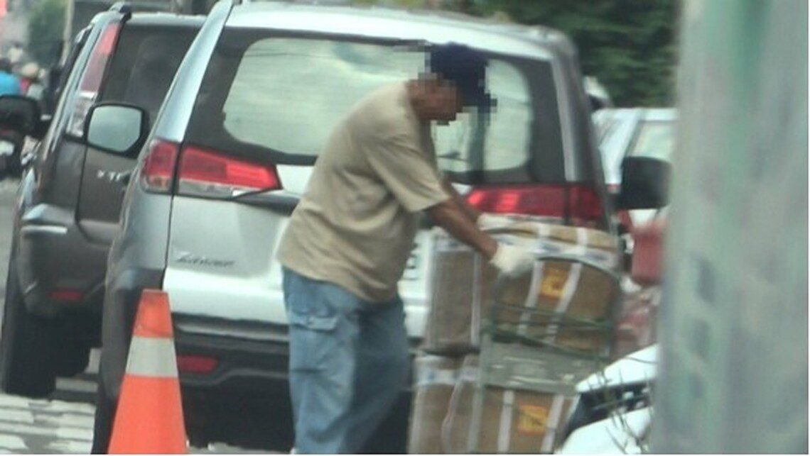 7月5日上午萬○環保科技有限公司負責人朱嫌駕駛一臺租賃廂型車駛入物流中心,年近花甲的朱嫌獨自搬運16箱每箱重達25公斤的包裹,專案組全程不敢懈怠,嚴密監控朱嫌行蹤,俟朱嫌駕車停靠高雄市岡山區某道路旁卸貨時,專案組遂持橋頭地檢署核發的拘票拘提朱嫌到案,並當場查扣16箱包裹及手機等相關證物。